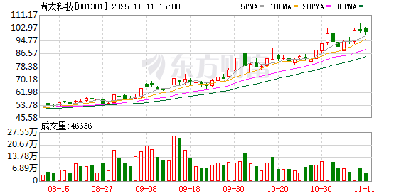 证券时报·数据宝统计,截至发稿,尚太科技收盘价为100.20元,下跌0.18%,本期筹码集中以来股价累计上涨0.80%。具体到各交易日,2次上涨,5次下跌。